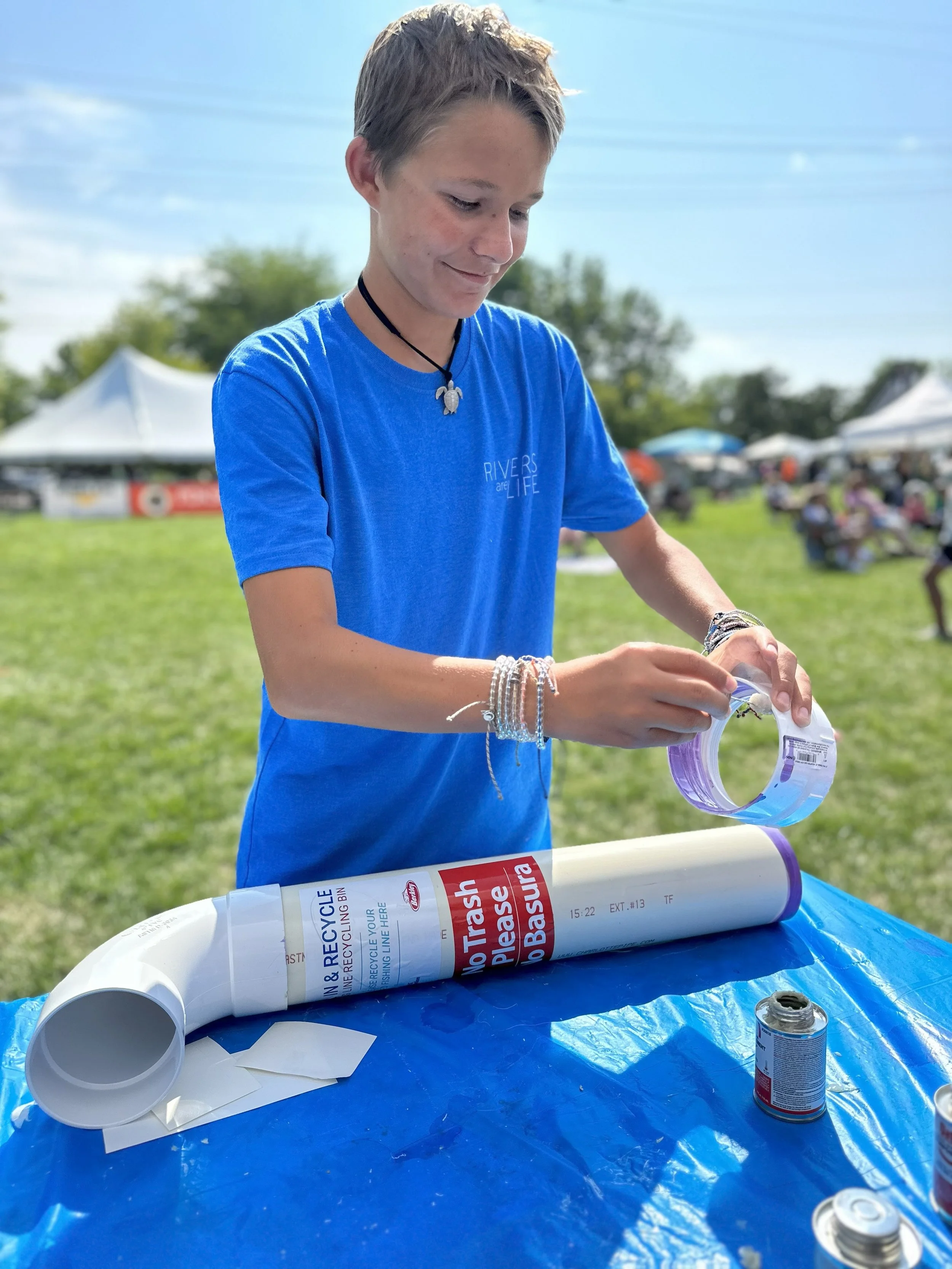 During the Midland Area River Days festival on Saturday, August 5, 2023, our Rivers are Life booth offered attendees the opportunity to personally create monofilament bins. To add to the festive atmosphere, we also had a face painter and giveaways. These 50 monofilament bins, created with the assistance of Cash Daniels and festival attendees, were strategically placed across the Great Lakes Bay region. Local collaborators committed to maintaining these bins, ensuring that anglers have a dedicated and proper disposal point for fishing waste in the years to come. Together, we are making a positive impact on the environment and promoting responsible angling practices in Midland and Bay City, Michigan.