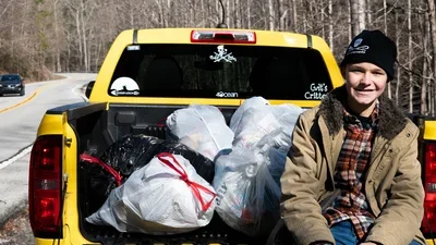 In total, volunteers, including Cash “The Conservation Kid" Daniels, and his mom, Erin, picked up 30 bags of trash, a fridge door, and a mailbox.