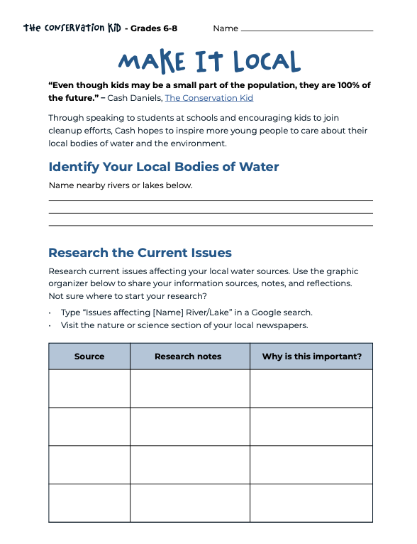 This activity helps students apply the lesson concepts to their own community by exploring their local waterways. It guides teachers in facilitating observations, discussions, and connections between the lesson and students’ surroundings.