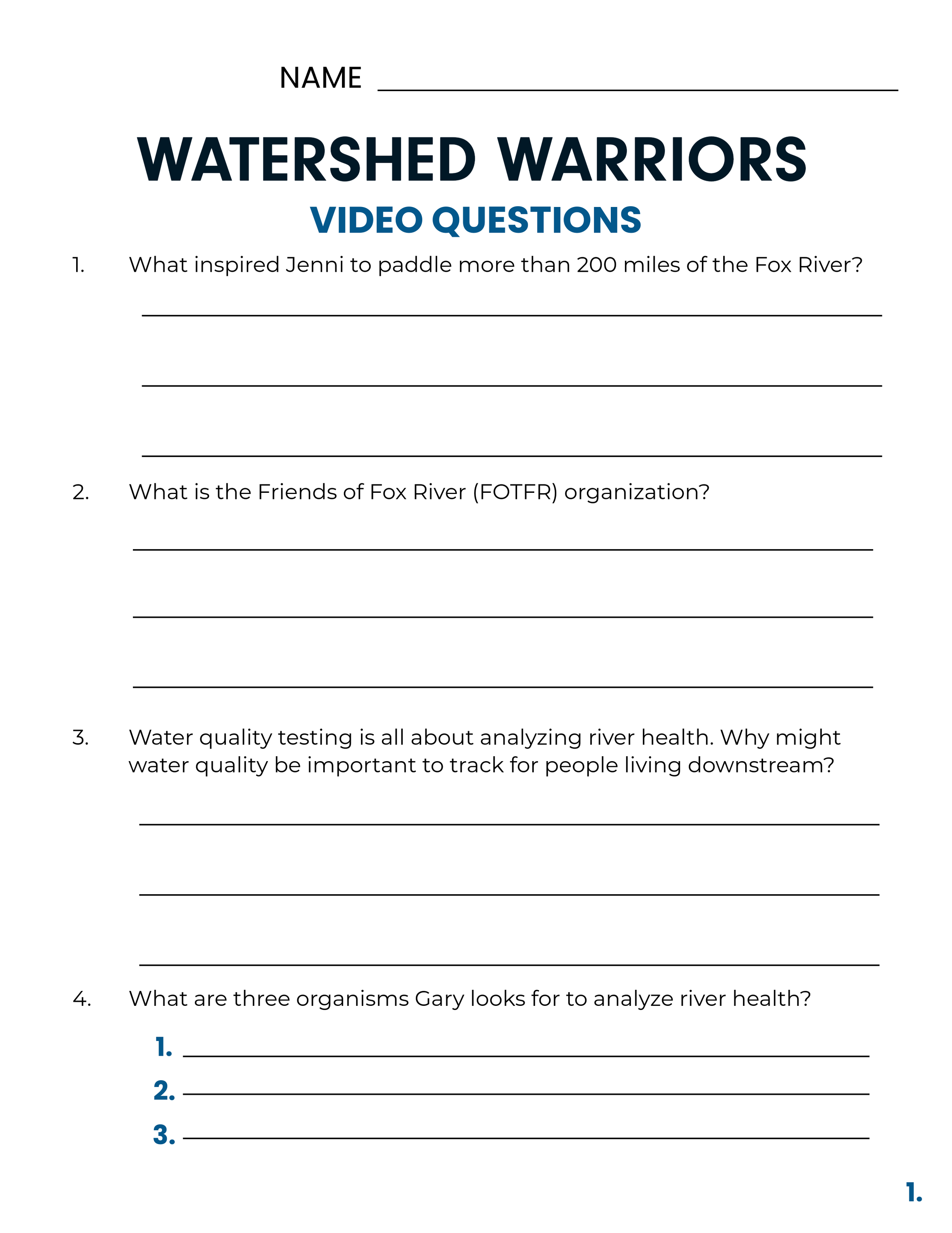 These video questions are designed to guide students as they watch the Watershed Warriors film, helping them engage with key ideas, reflect on important themes, and connect the story to broader conservation concepts.