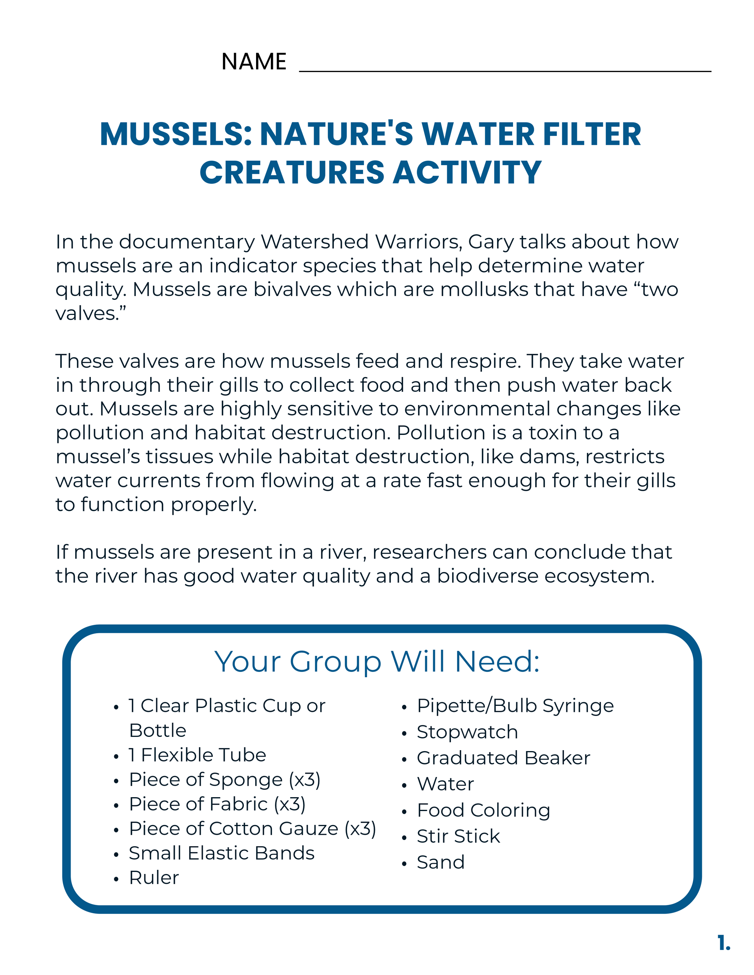 This activity helps students learn about the amazing process mussels use to filter water, conduct research, and explore how individuals and communities can create positive change.