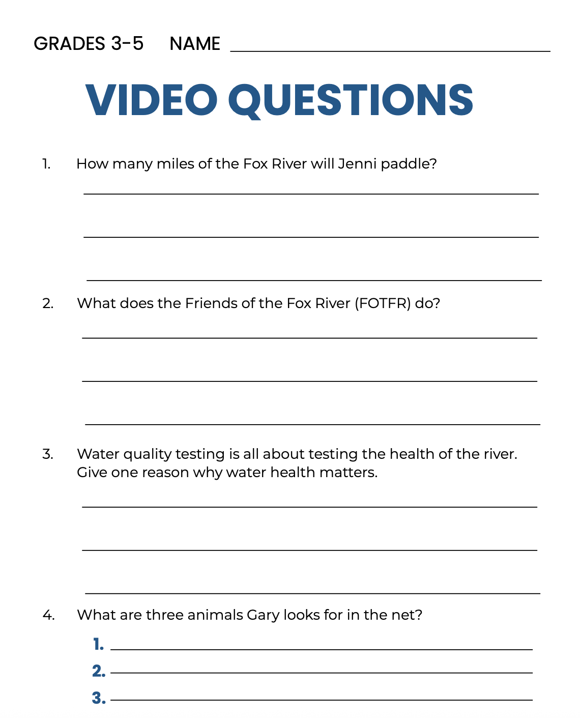 These video questions are designed to guide students as they watch the Watershed Warriors film, helping them engage with key ideas, reflect on important themes, and connect the story to broader conservation concepts.
